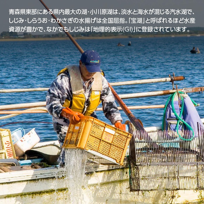 かつて天然うなぎの漁獲量で日本一を記録した小川原湖。しかし現在は資源量が限られているため一般に出回る機会は少なく、うなぎが獲れるということはあまり知られていません。資源は少しずつ回復してきているもののまだまだ希少な天然うなぎと、「地理的表示(GI)」に登録されている小川原湖産しじみの中から大粒のものをセットにしました。小川原湖の恵みを楽しむちょっと特別な詰合せです。