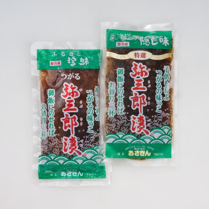 ねばりのある刻み昆布に大根と数の子を加え、醤油で味付けした『弥三郎漬』。炊きたてご飯にのせれば、箸が止まらなくなるおいしさです。特選弥三郎は数の子を増やし、やや甘みにした味付け。