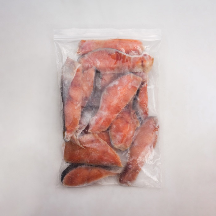オホーツク海で獲れた秋鮭を使用し、味付けしていない生の切身にしました。バラ凍結しているので、使いたい分だけ取り出せて便利です。