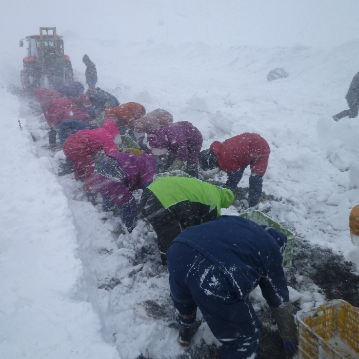 晩秋のある日、にんじんの掘り取り作業を行う日に大雪に見舞われました。